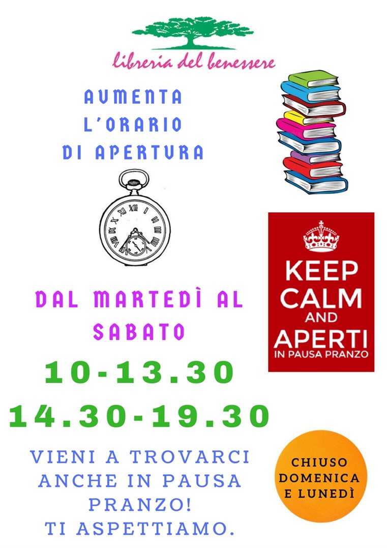 Nuovo orario: dal martedì al sabato 10-13.30/14.30-19.30