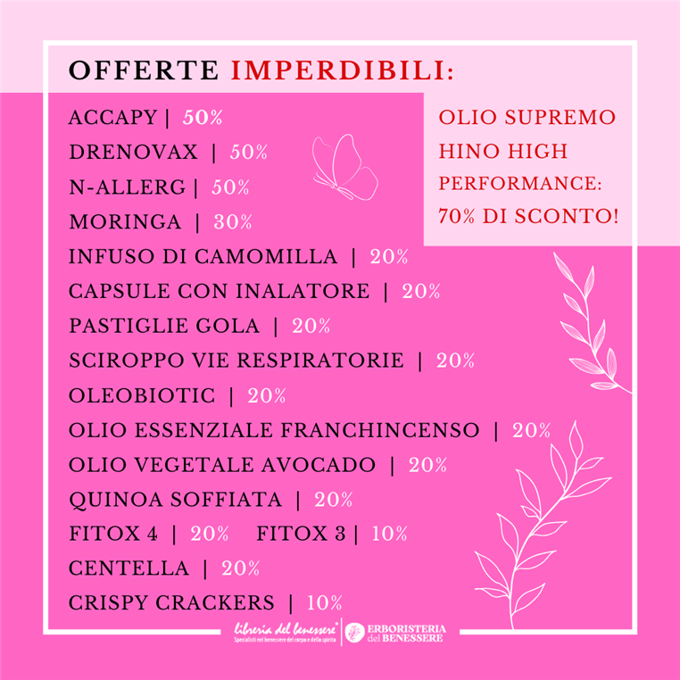 ?? Approfitta di offerte imperdibili! ?? Abbiamo per te una selezione di prodotti erboristici e alimenti biologici con sconti fino al 50%! ?? Scegli un croccante sfizio per il tuo yogurt a colazione o una salutare “pastina” per le tue minestre a cena: la Quinoa Soffiata Probios al 20% di sconto! ?? Preparati contro le allergie stagionali con l’integratore in capsule N-Allerg di Ligne De ...