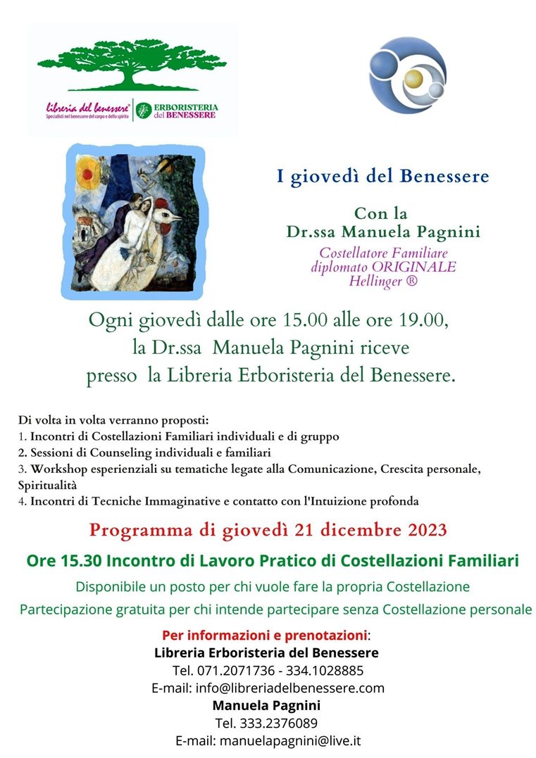 Il sistema familiare è un campo di energia, in cui ognuno di noi ha un posto unico e tutti sono in risonanza. Esso condiziona profondamente il nostro destino e i nostri sentimenti, spesso inconsapevolmente. Le Costellazioni Familiari offrono l’occasione di comprendere queste dinamiche al livello più profondo. Possiamo andare oltre, con una consapevolezza che proviene dall’Amore, aprendo nuovi orizzonti nella nostra vita.