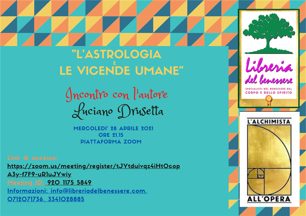 Quando: mercoledì 28 aprile 2021 Orario: 21.15 Tipo di evento: Gli astri nella nostra vita Dove: Zoom